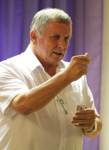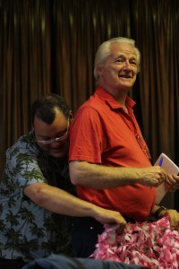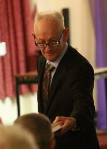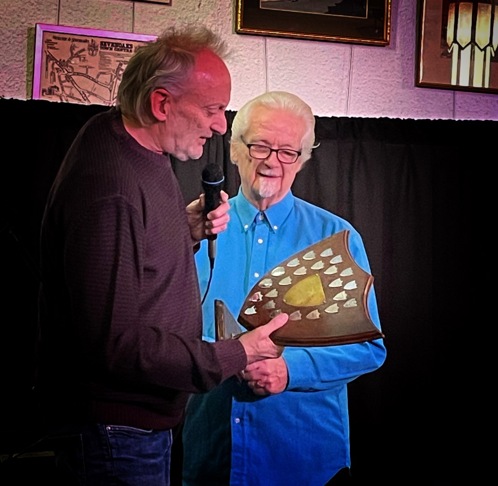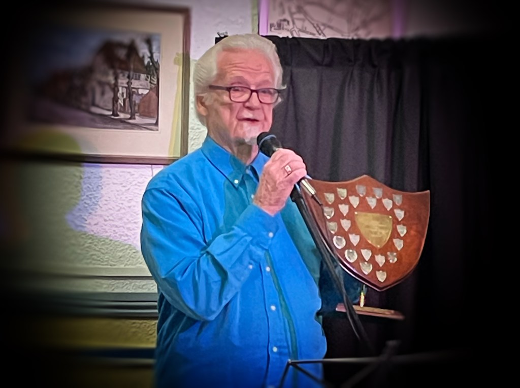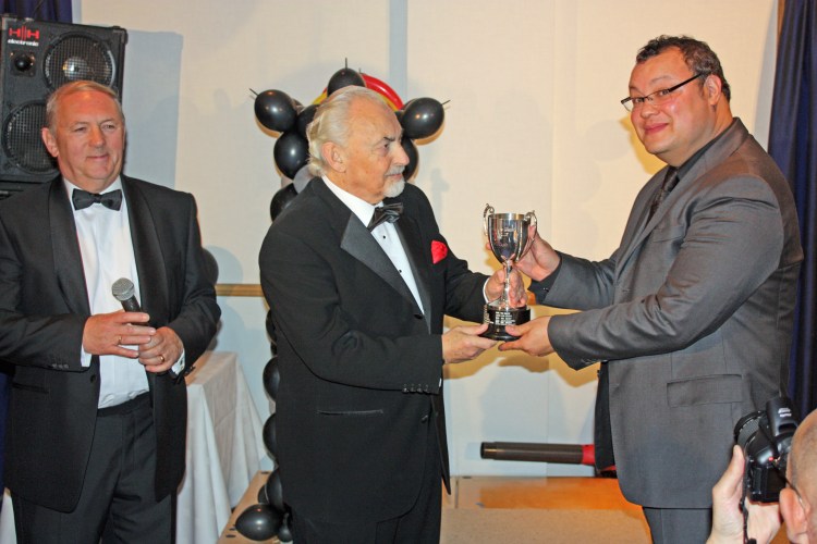 Past Chairman Terry Reeve being presented with the KMG Entertainers award from our celebrity guest act Alan Shaxon