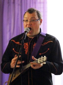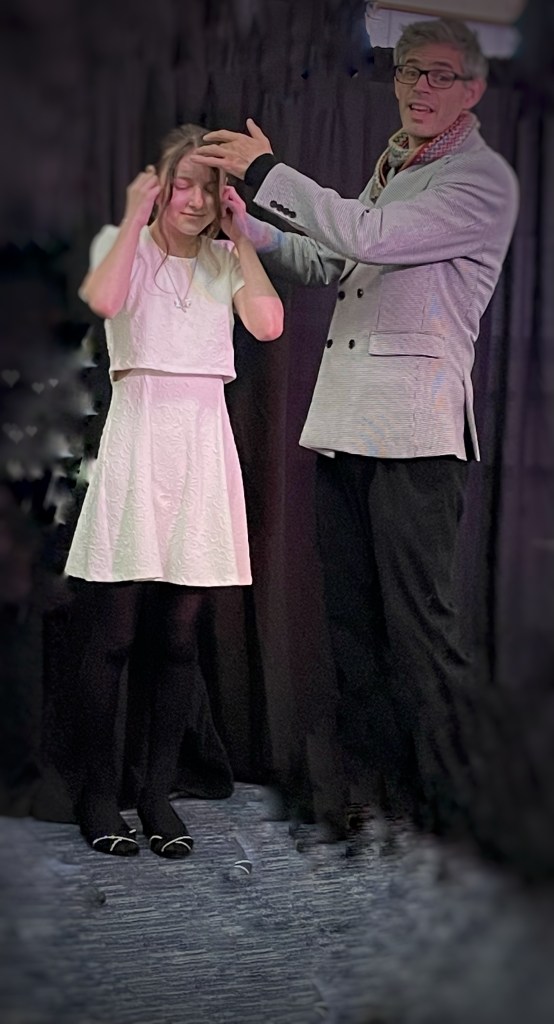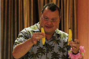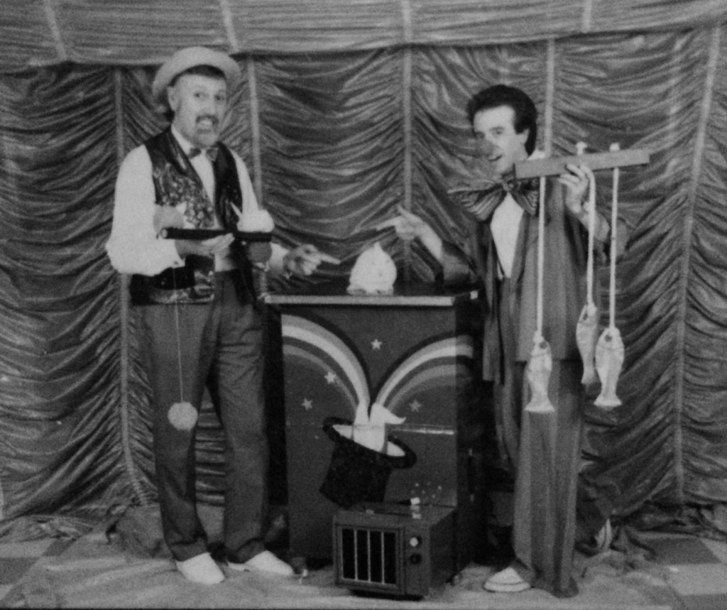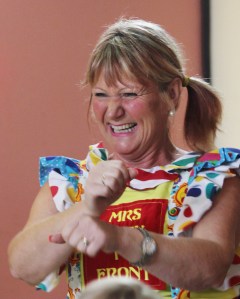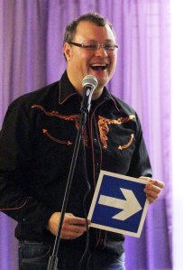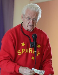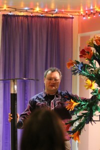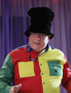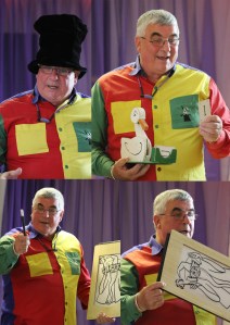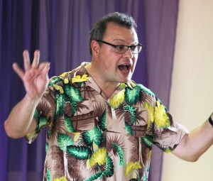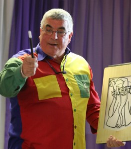 Colin Perrotton making the children laugh at a PTA fundraiser